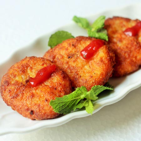 Aloo Tikki is the popular North Indian street chaat or snack. It is a golden-fr ...
