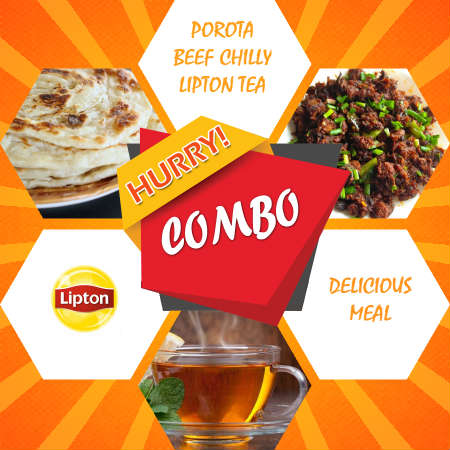 Cafe Lallabi special combo! Porota, Beaf Chilly & Lipton Tea.
