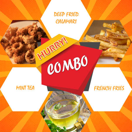 Cafe Lallabi special combo! Deep Fried Calamari, French Fries & Mint Tea.
