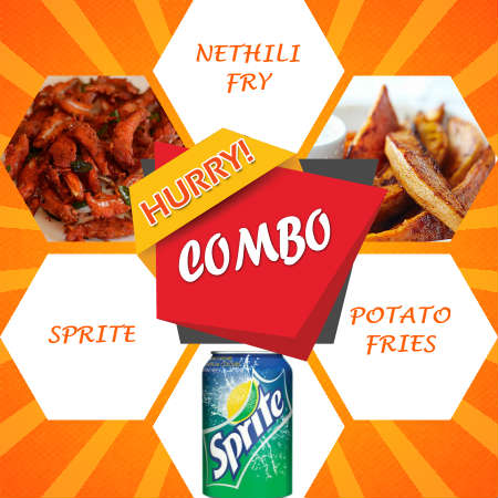 Cafe Lallabi special combo! Nethili Fry, Potato Fries & Sprite.