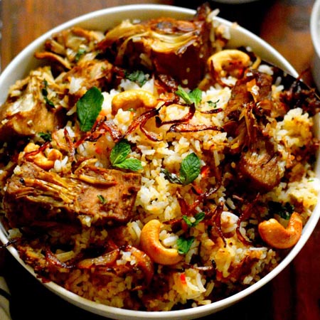 Jackfruit biryani spices prepared using yogurt and cooked with rice for a scrump ...