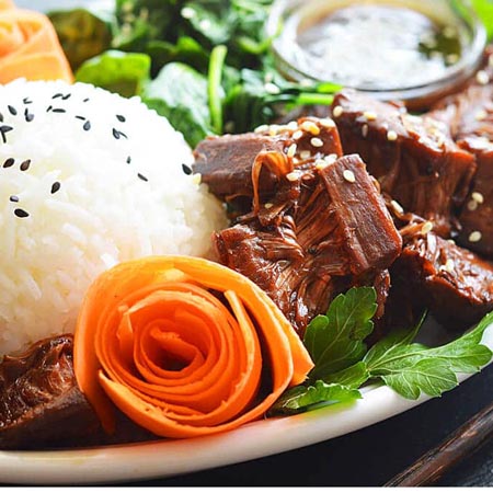 Jackfruit Teriyaki coated in a homemade teriyaki sauce and paired with a crisp, ...