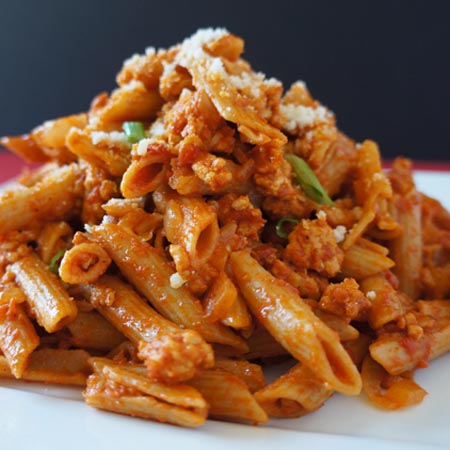Non Veg pasta made with fresh tomatoes and chicken. This is quick to make for a ...
