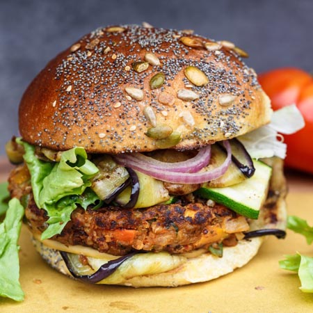 Veg Burger made from ingredients like legumes, nuts, grains, seeds or fungus ...